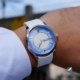 The Auto Sport 79 in gold features a simple time and date format (date at 3 o’clock) and presents 5N rose gold hands and applied droplet hour markers on a cream-coloured opaline dial finish that teases with pale pink hues in certain lighting conditions. This dynamic element is mainly down to a silver-rose galvanic treatment that accompanies the opaline finish. Pointing to its sporty heritage, the hour markers and hands have been treated with Super-LumiNova to ensure they remain legible in dark conditions.
